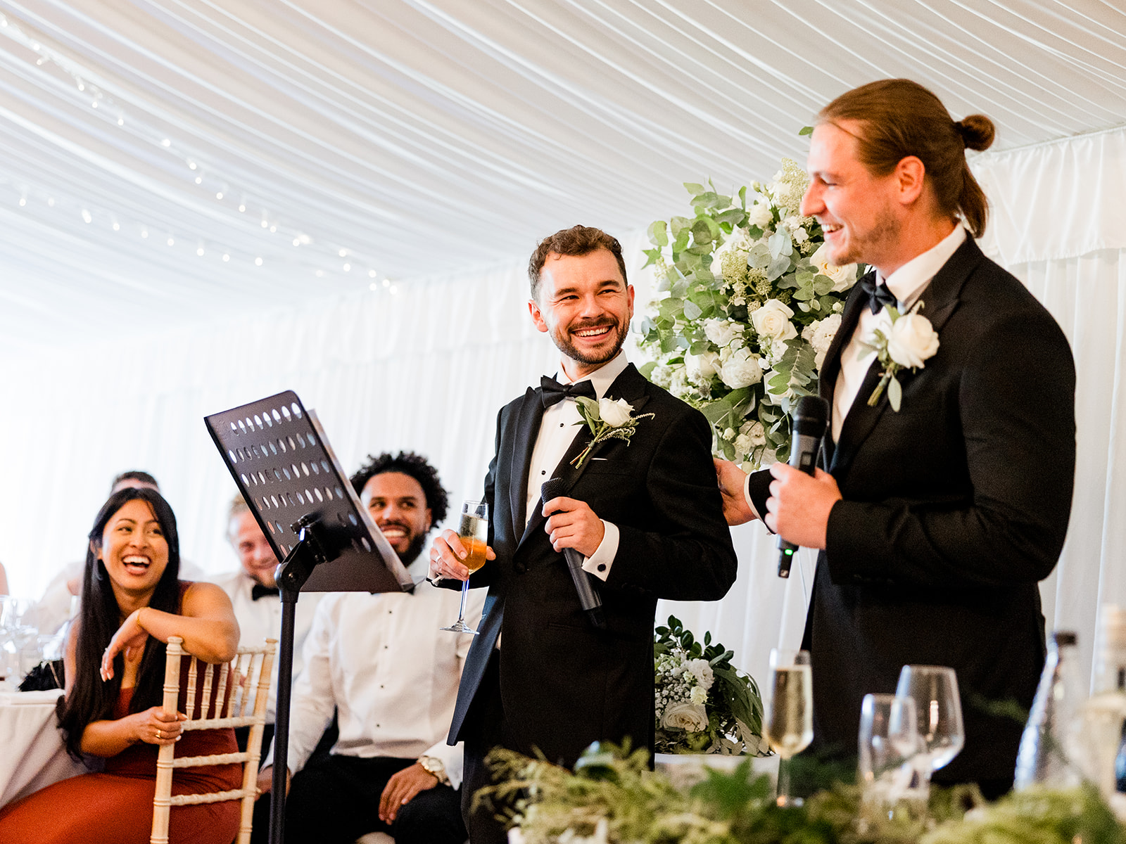 Priory Cottages is such a wonderful venue, everything is on site for you and the staff there are excellent ensuring your day flows and works seamlessly. The venue itself is made up of The Barn, The Marquee, and 7 beautifully decorated cottages all centered around a private tranquil courtyard. Priory cottages is such an elegant wedding venue and when mixed with a stylish black tie theme, like Hannah & Henry’s day (and one of my personal favourites) it makes for such an incredibly stylish choice of wedding venue.