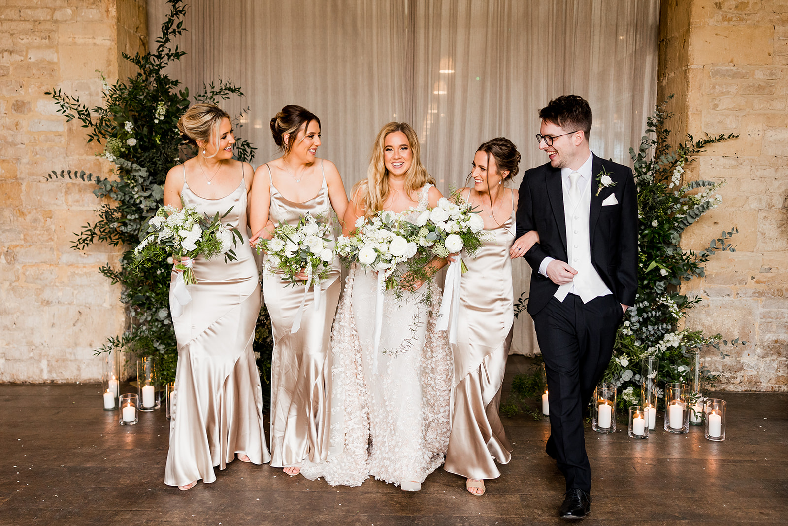 After the ceremony everyone headed outside for welcome drinks and whilst the wonderful team transformed the barn for some group photos we headed for a walk around the venue for some couple portraits against the beautiful Cotswold countryside.